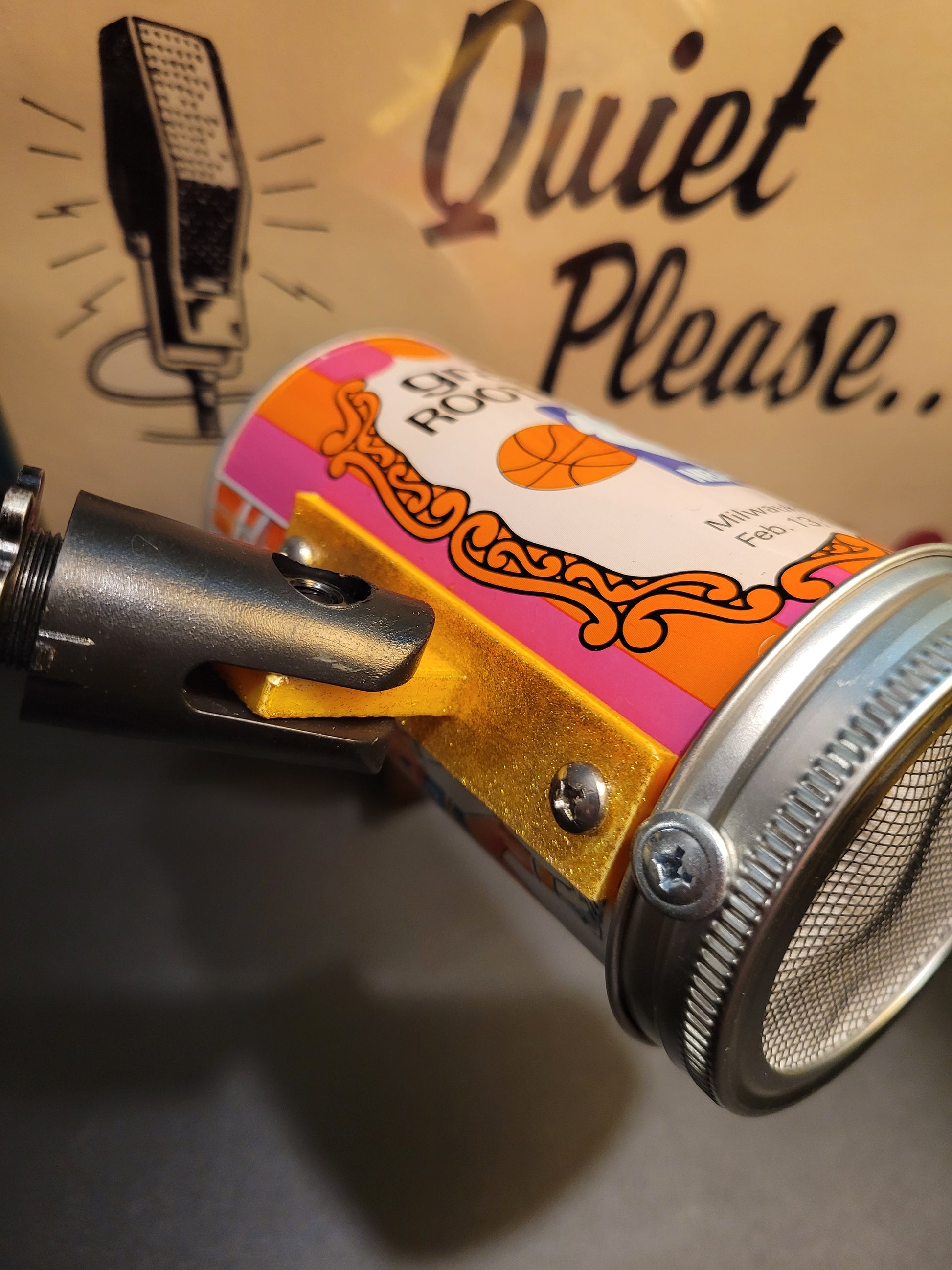 Hand-assembled lo-fi microphone made from a solid steel soda can from 1977 to celebrate the NBA All Star Game being held in Milwaukee, Wisconsin; extremely limited supply since they don't stamp these cans any longer.
