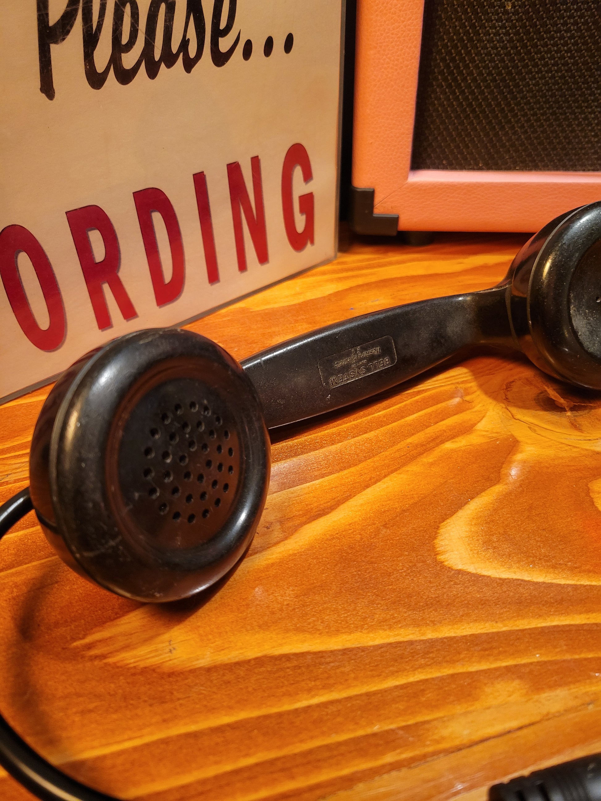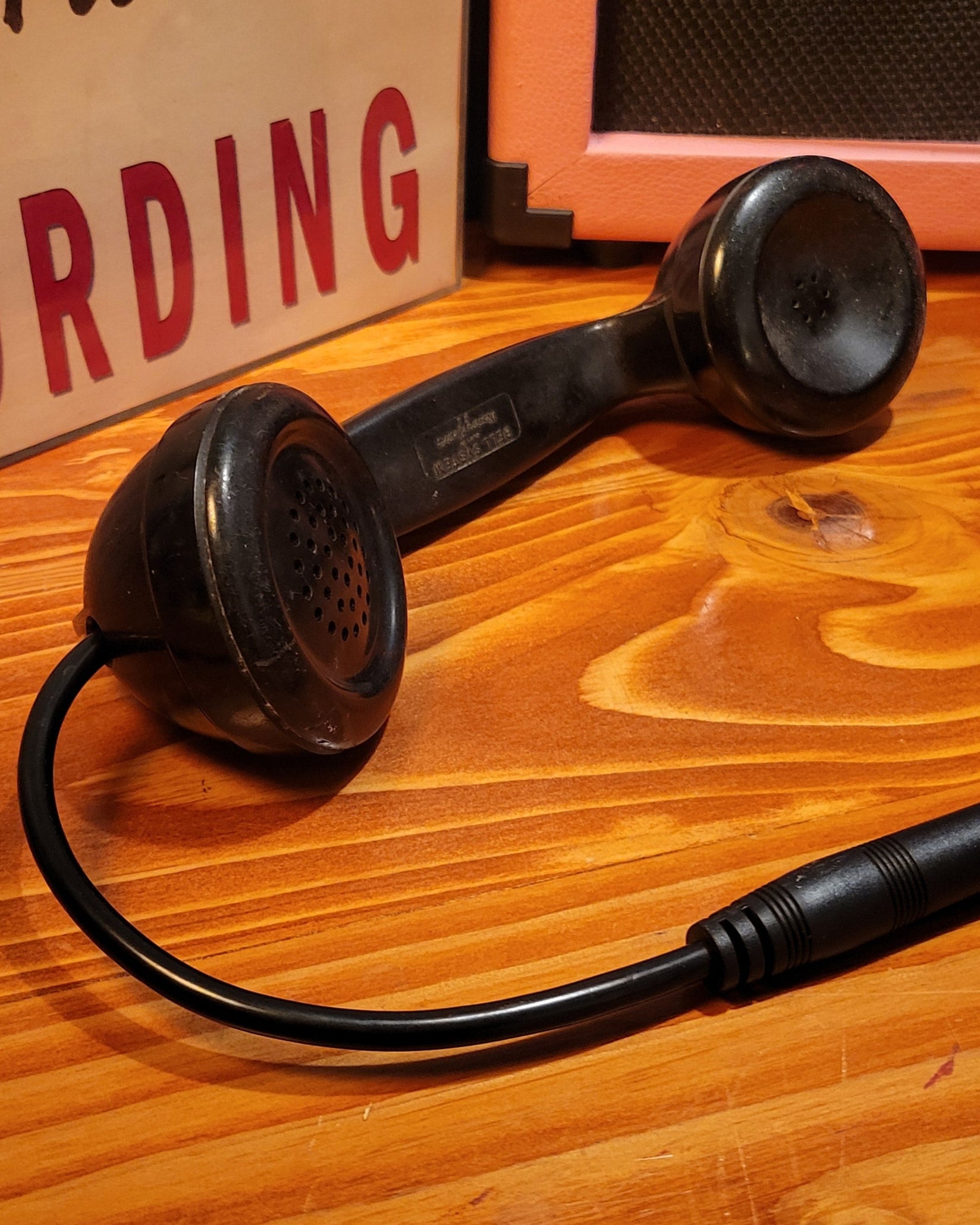 Hand-assembled microphone created using an old 1950s Bell Systems handset, featuring a 1/4 inch output extension.