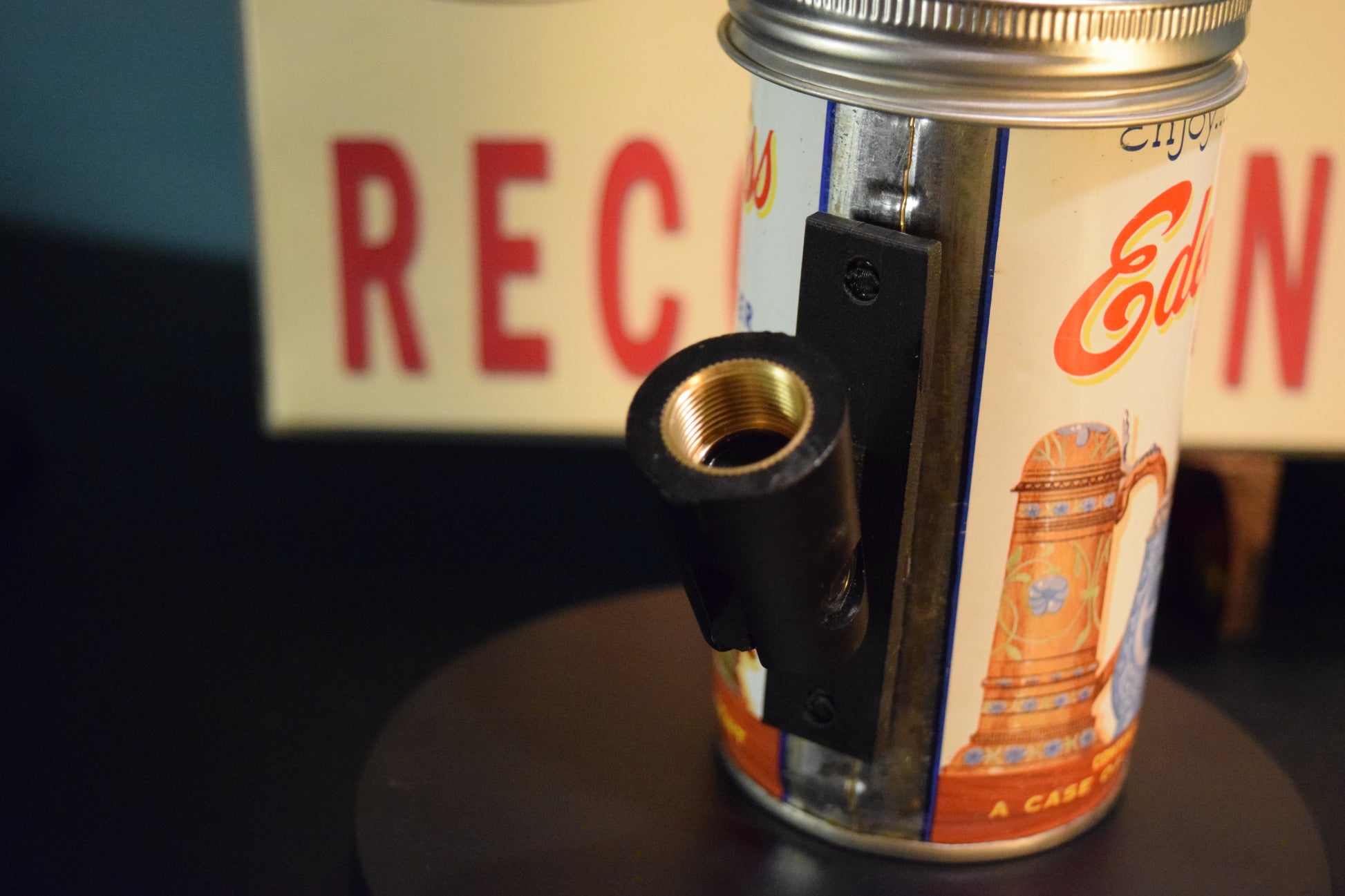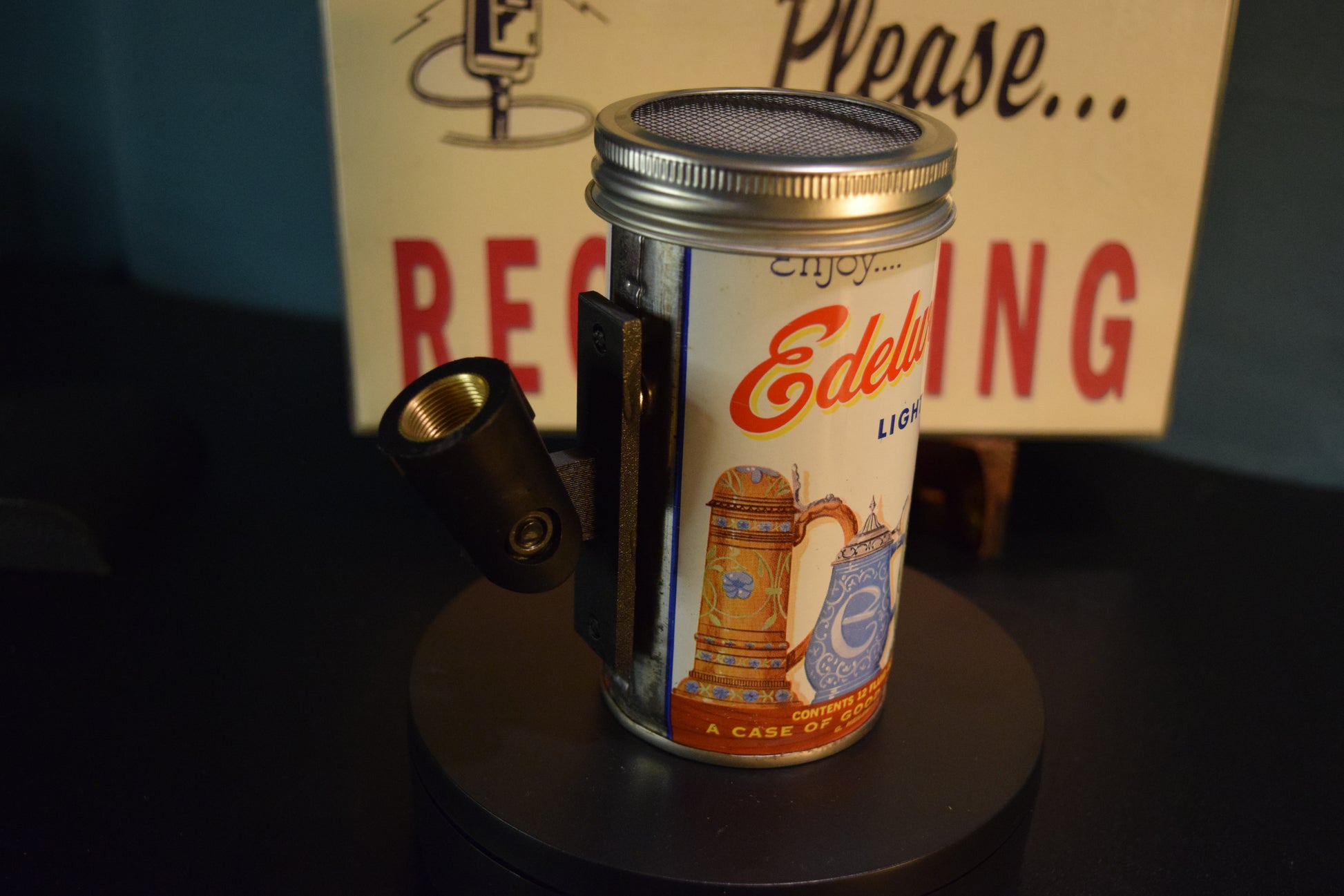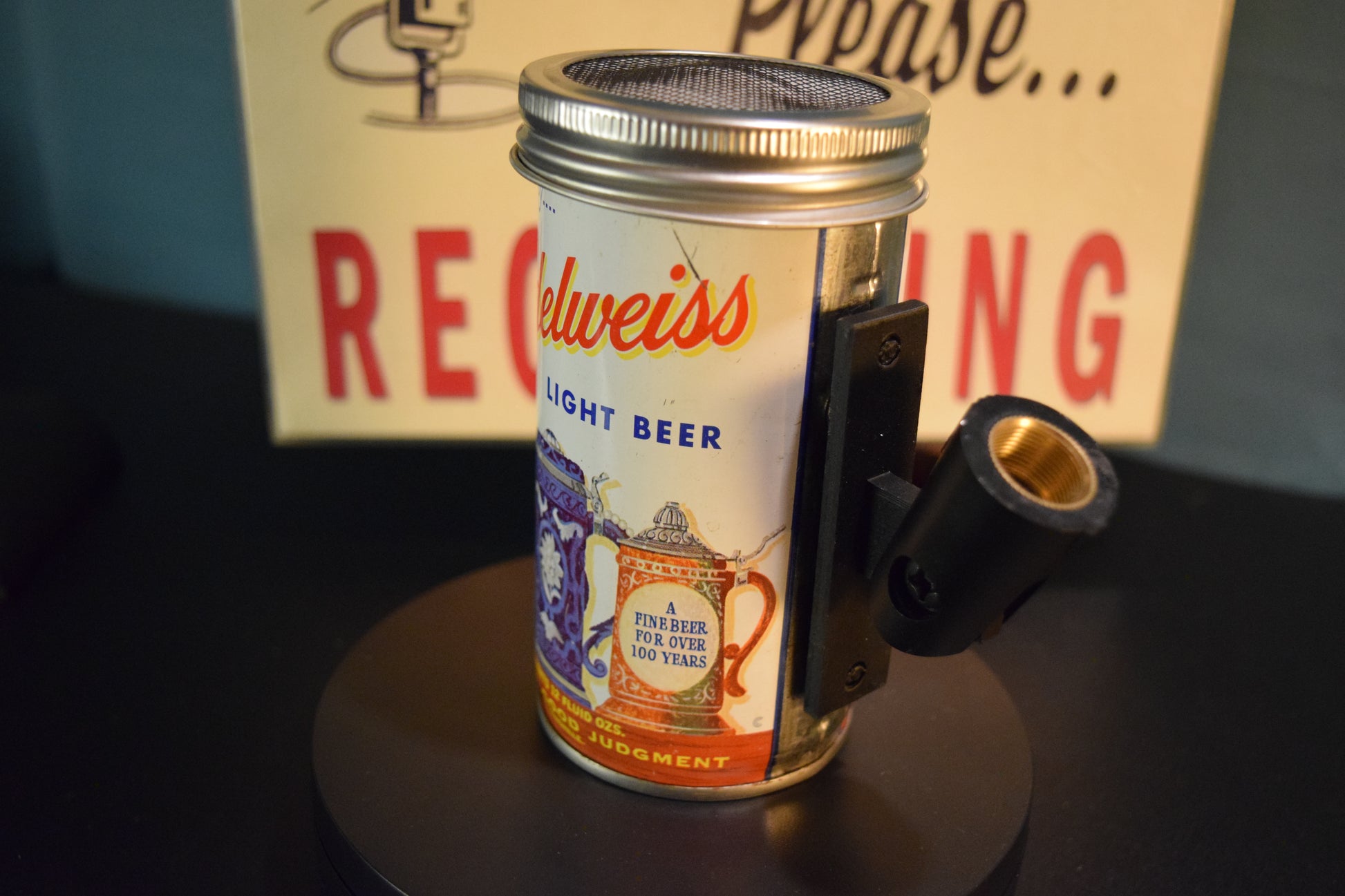 Hand-assembled lo-fi microphone made from a solid steel beer can from the 1970s; extremely limited supply since they don't stamp these cans any longer.
