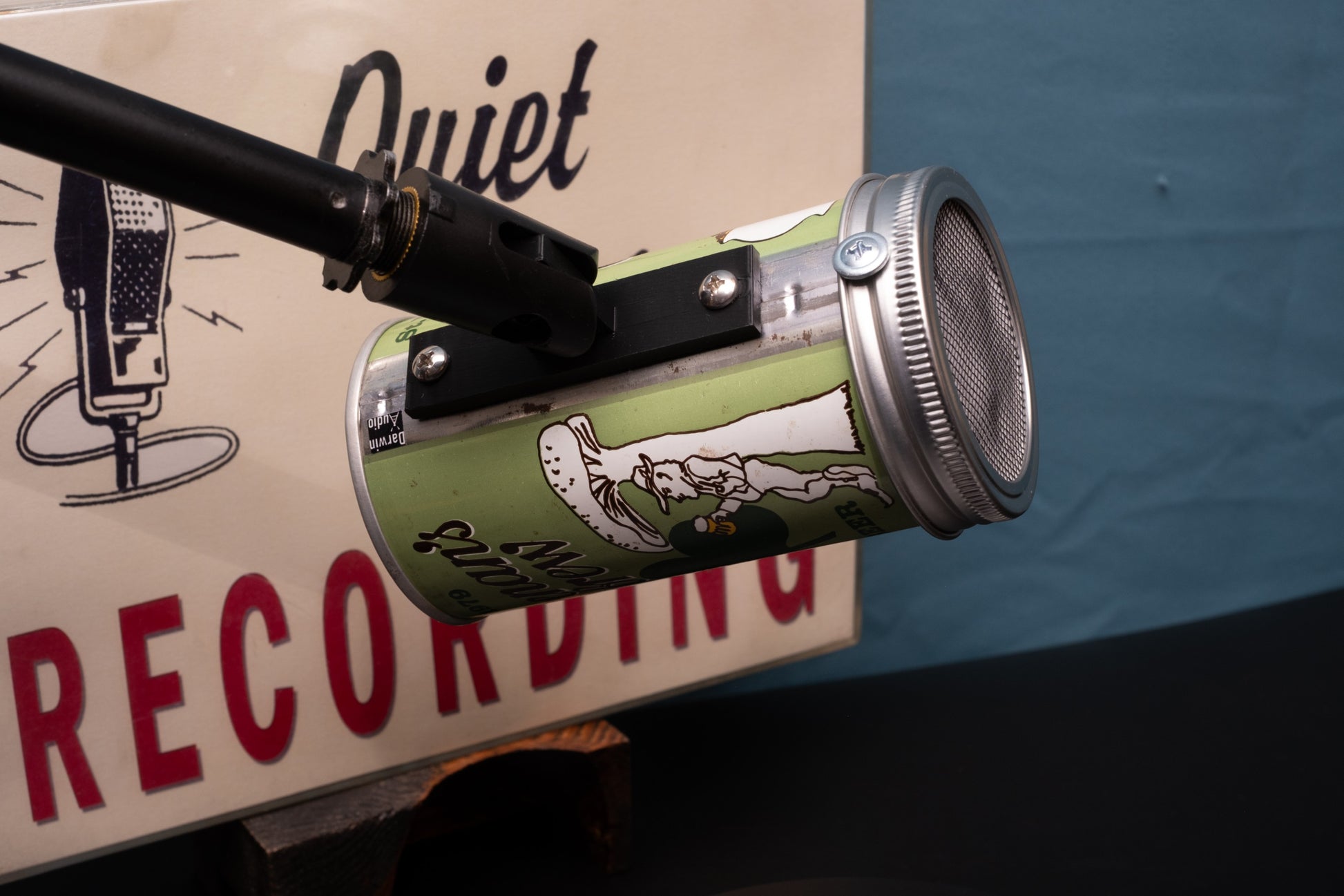 Hand-assembled lo-fi microphone made from a solid steel beer can from the 1970s. Extremely limited supply since they no longer stamp these types of cans.
