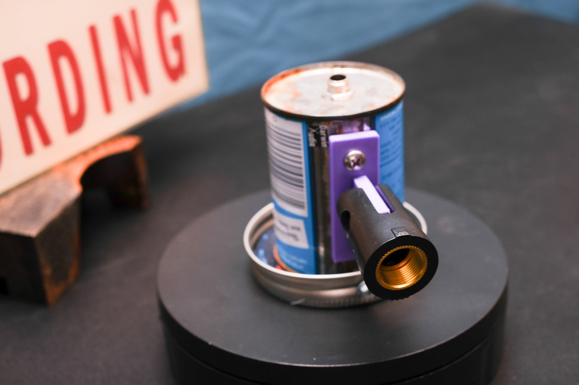 Hand-assembled lo-fi microphone made from a tiny, 4 oz solid steel Gerber baby food can from the 1970s. Extremely limited supply since they no longer stamp these types of cans.