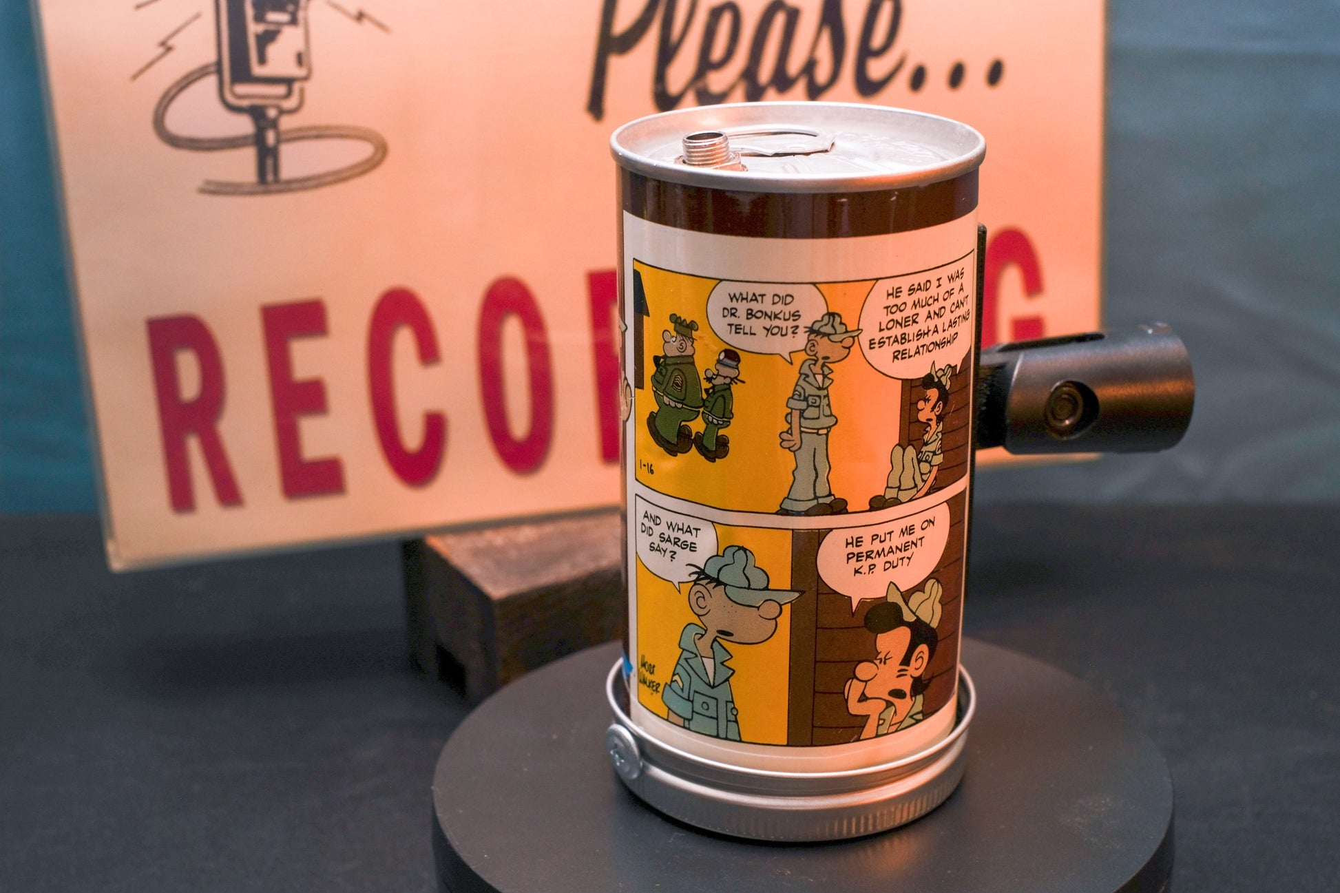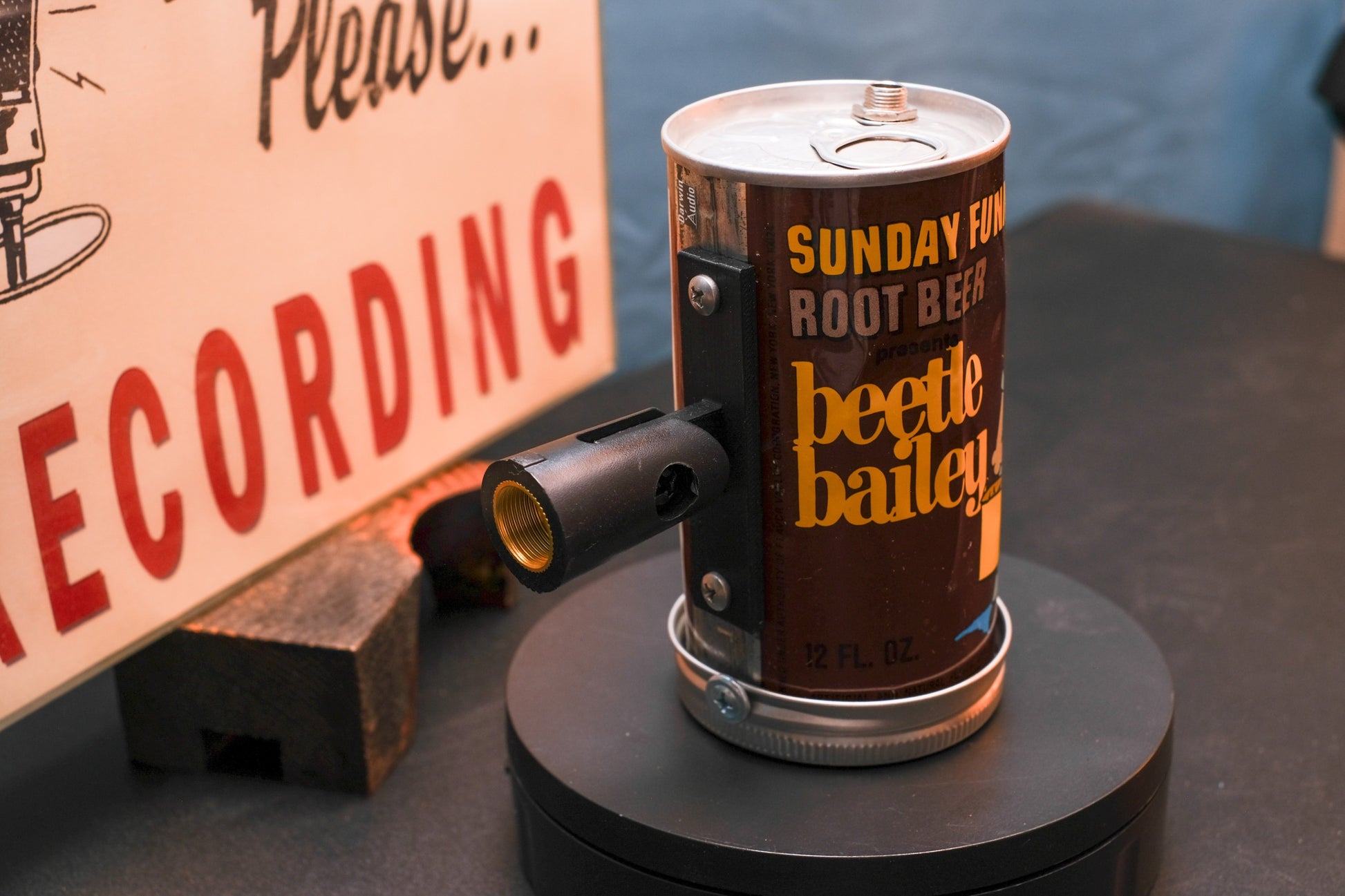 Lo Fi Soda Can Microphone - 1960s Brown Comic Can Beetle Bailey