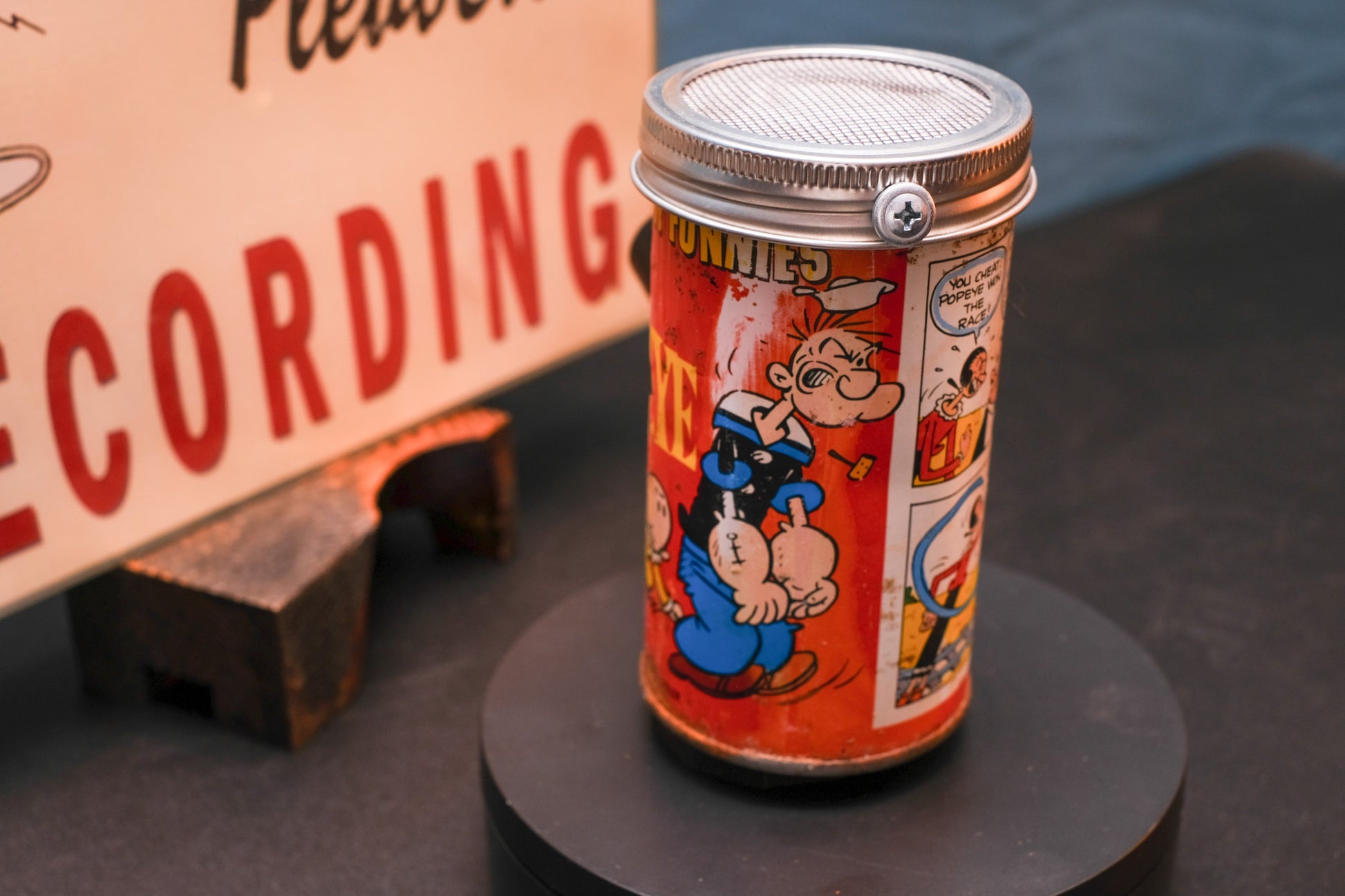 Lo Fi Soda Can Microphone - 1960s Cheater Comic Can Popeye