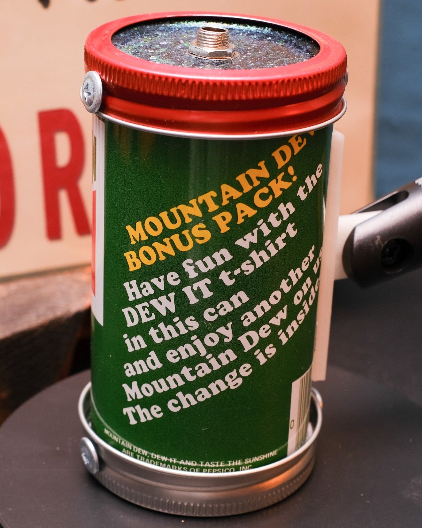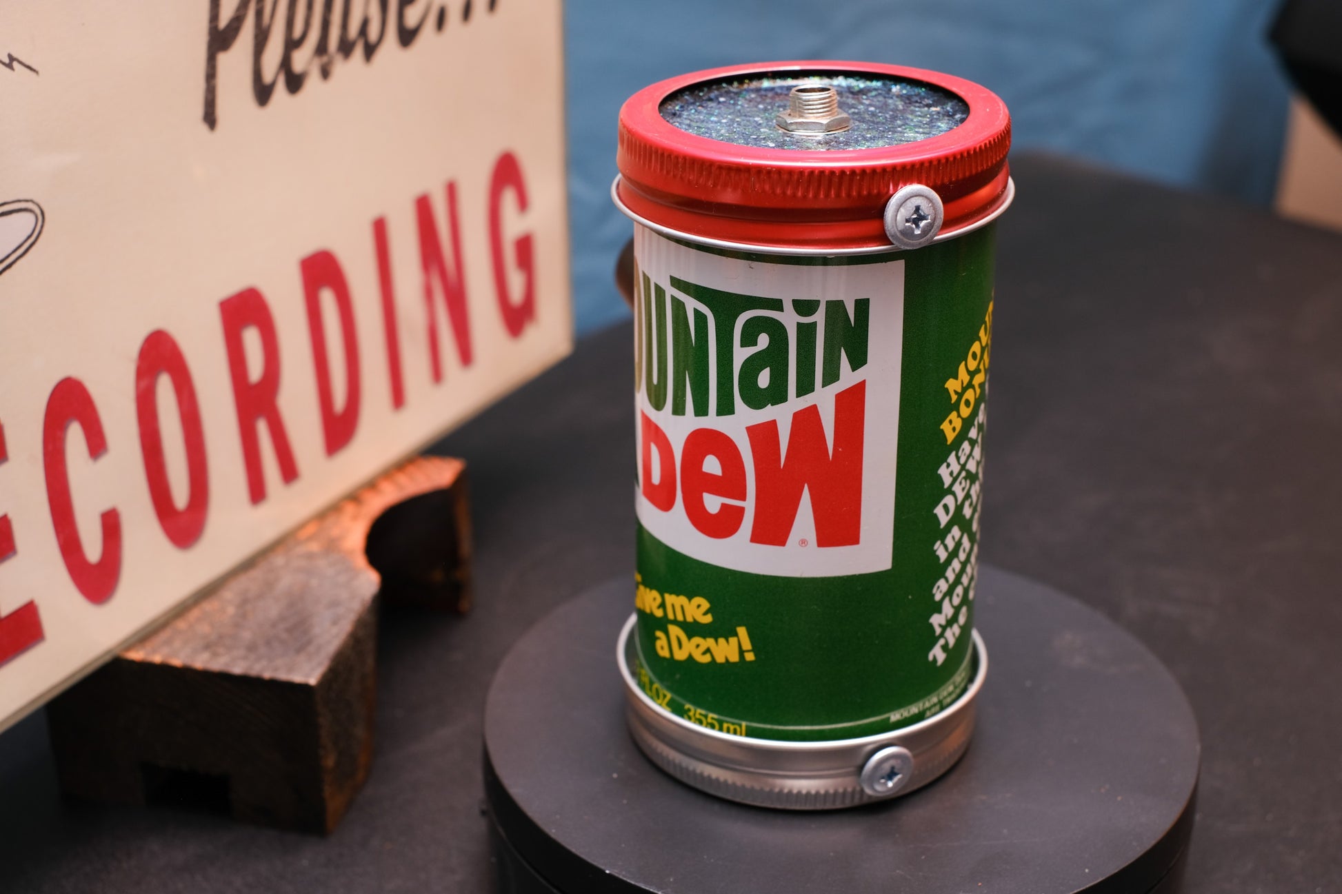 Lo Fi Soda Can Microphone - 1970s Rare T-Shirt Contest Mountain Dew