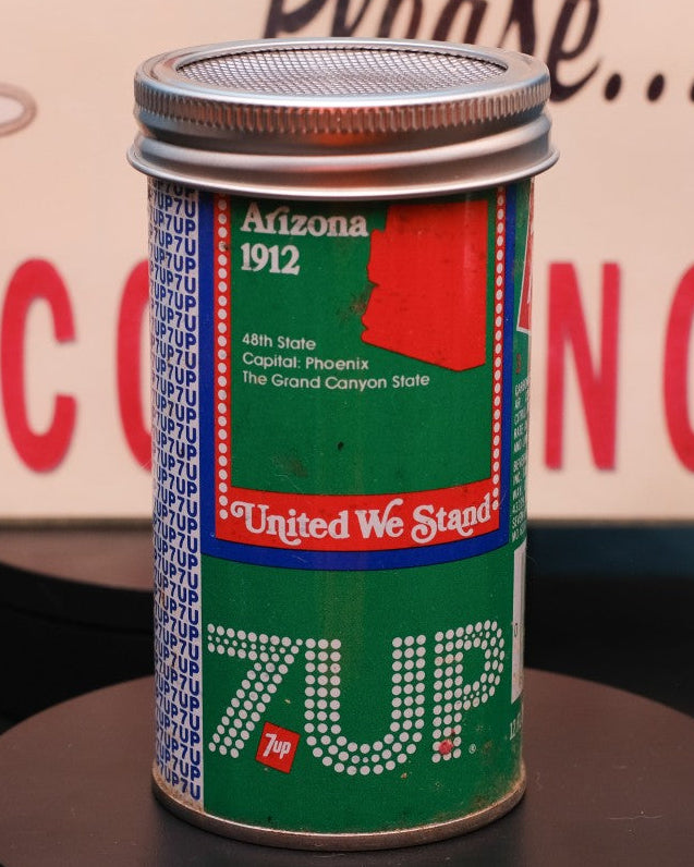 This is can is from the special edition 1976 7UP USA Bicentennial 50 States Collection.